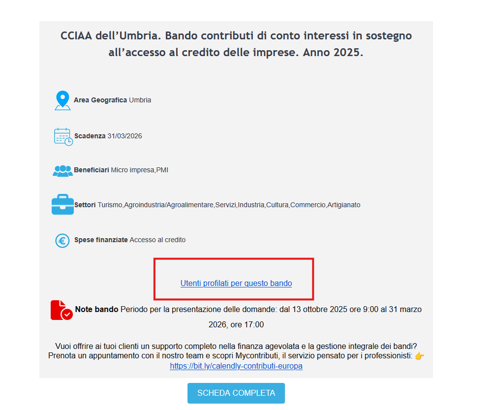 Risali ai clienti adatti ad un bando direttamente dall'alert informativo