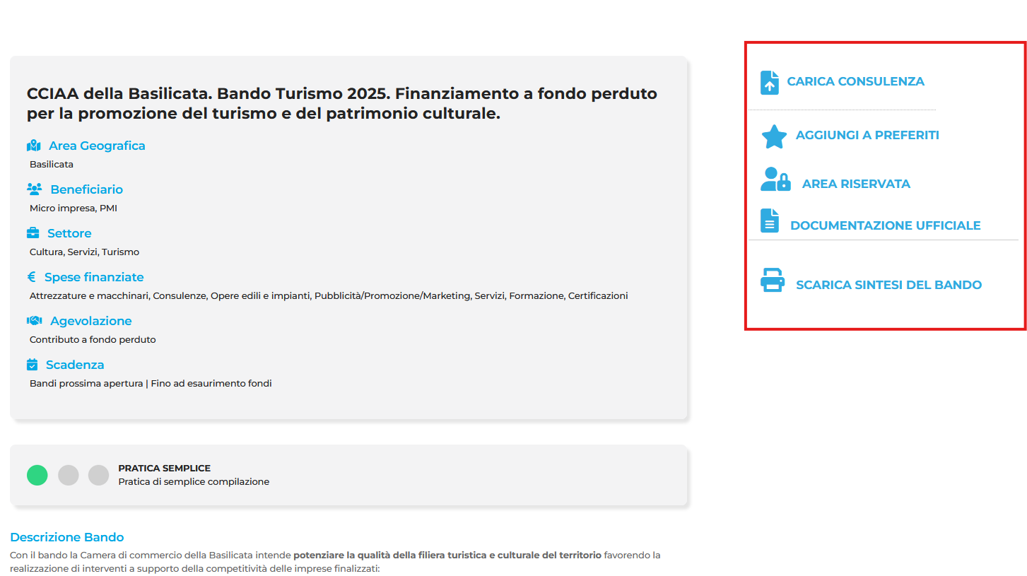 Carica il profilo dei tuoi clienti (fino a 50) nell’area riservata e scopri con un click quali bandi sono in linea con la loro realtà e i loro progetti e viceversa (quali clienti hanno il profilo idoneo per un determinato bando).